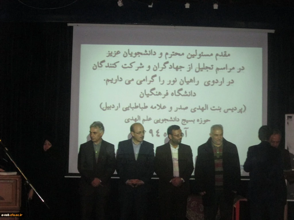 برگزاری همایش بصیرتی «سبک زندگی اسلامی» و تجلیل و تکریم از جهادگران اردوهای جهادی تابستان 94به مناسبت هفته بسیج با حضور مدیریّت محترم امور استانی و روسای دانشگاه فرهنگیان اردبیل و مسوولان ناحیه ی بسیج دانشجویی استان 5