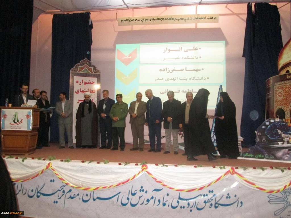 مراسم اختتامیه ی جشنواره ی فعّالیّت های برتر علمی، فرهنگی و افسران جنگ نرم دانشگاه های استان با افتخارآفرینی دانشجو معلمان دانشگاه فرهنگیان اردبیل برگزار شد. 7
