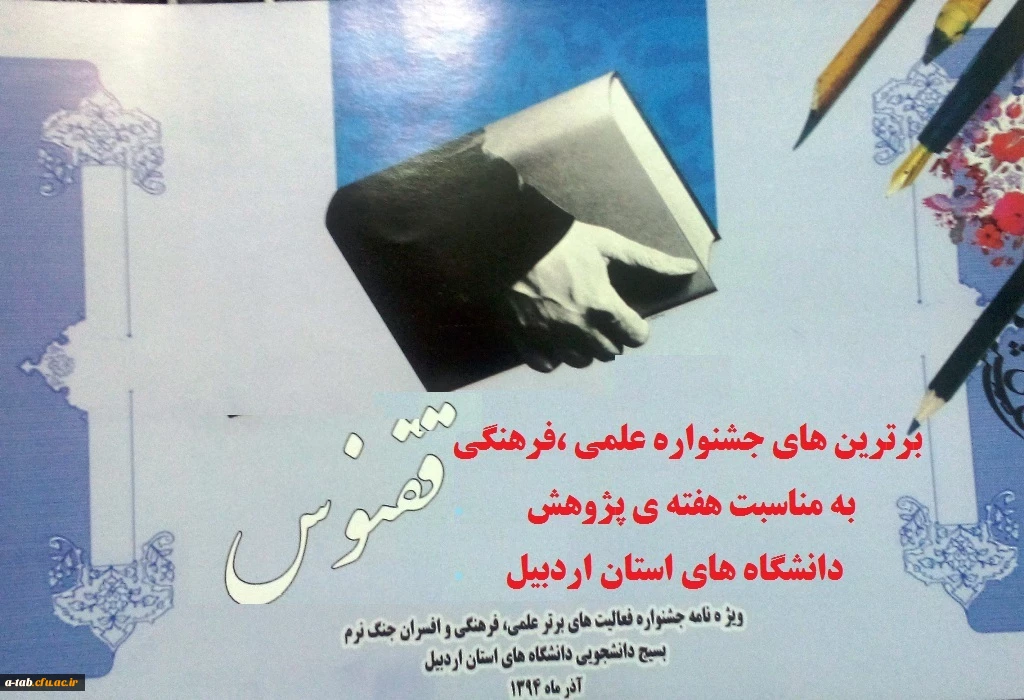 درخشش  دانشجومعلّمان دانشگاه فرهنگیان اردبیل  و کسب 19 رتبه از 38 رتبه در رشته های مختلف در جشنواره علمی – پژوهشی ، فرهنگی دانشگاه های استان  به مناسبت هفته ی ملّی پژوهش و فناوری 2