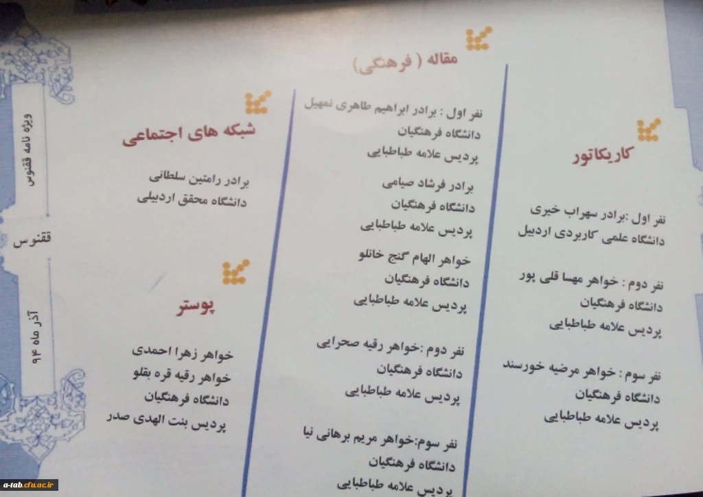 درخشش  دانشجومعلّمان دانشگاه فرهنگیان اردبیل  و کسب 19 رتبه از 38 رتبه در رشته های مختلف در جشنواره علمی – پژوهشی ، فرهنگی دانشگاه های استان  به مناسبت هفته ی ملّی پژوهش و فناوری 2
