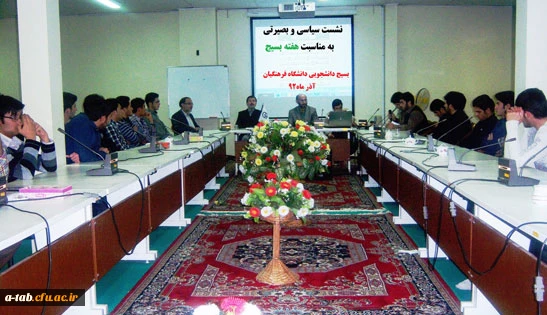 برگزاری نشست سیاسی و بصیرتی به مناسبت هفته بسیج در دانشگاه فرهنگیان ، پردیس علامه طباطبایی اردبیل با سخنرانی آقای قاسمیان معاونت سیاسی سپاه حضرت عباس(ع) استان اردبیل