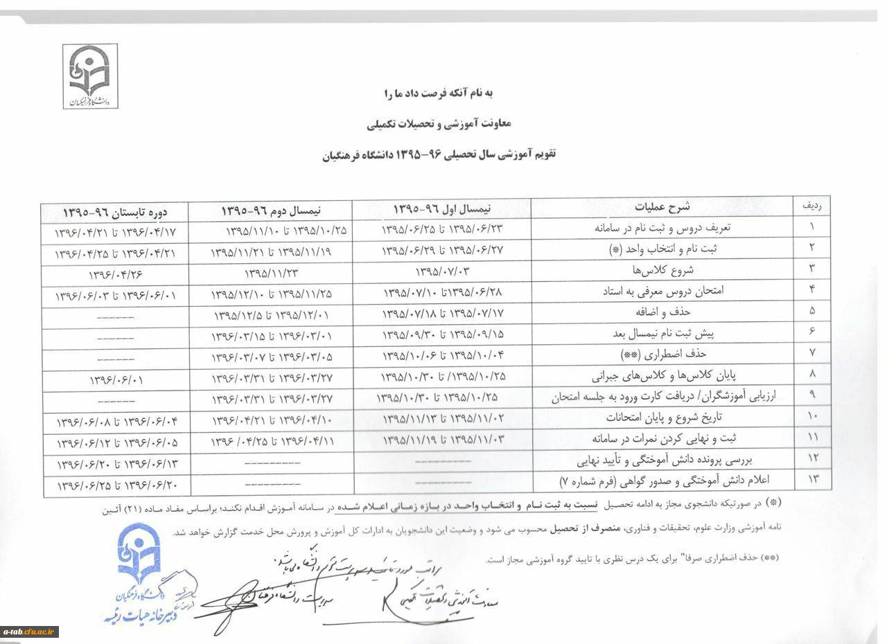 تقویم آموزشی سال تحصیلی 96 - 1395 دانشگاه فرهنگیان 2
