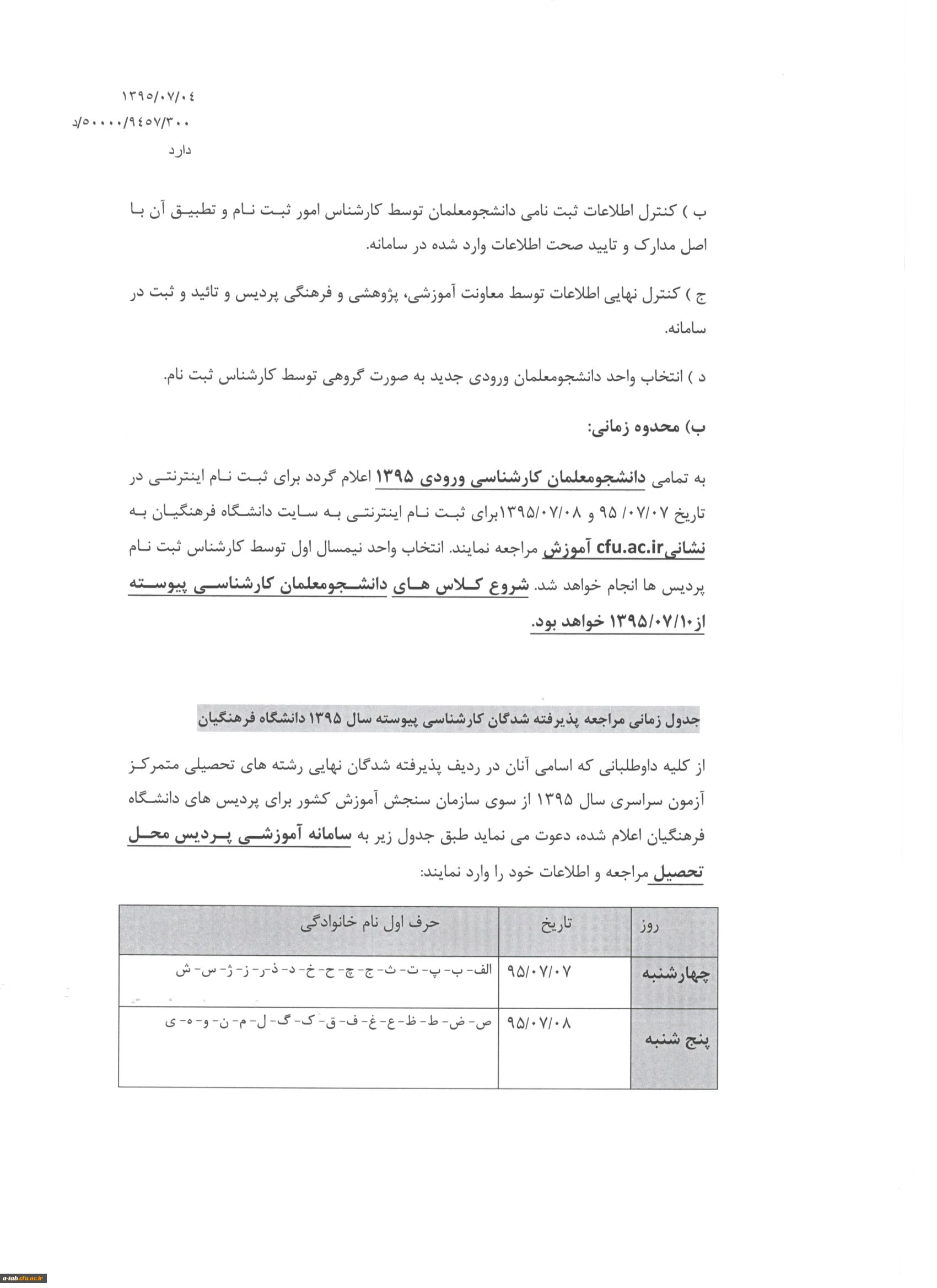 اطلاعیه ی شرایط و ضوابط ثبت نام پذیرفته شدگان آزمون سراسری کارشناسی پیوسته سال 1395 3