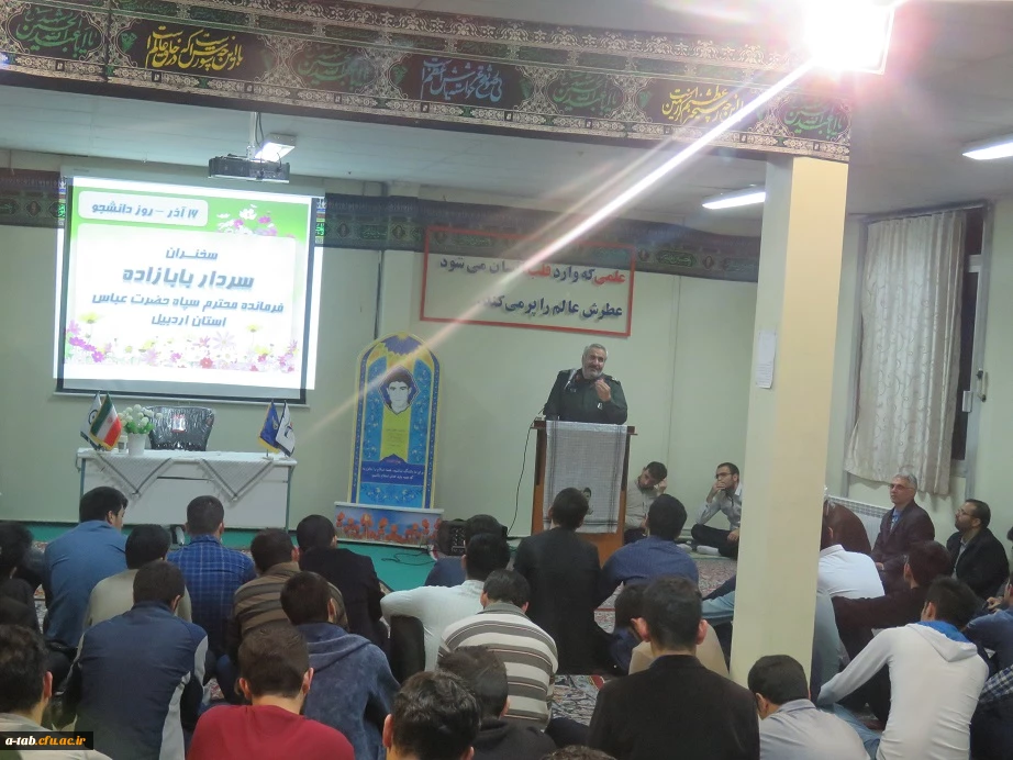 سردار بابازاده در مراسم روز دانشجو با اشاره به دانشجومعلّمان پردیس: تک تک این جوانان پاک سرشت و چهره های نورانی و مؤمن ، برای فردای این مملکت و مرز و بوم یک سرباز تمام عیار خواهند بود. 4