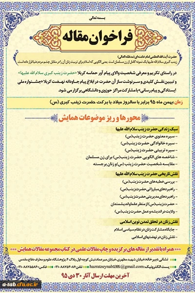 سازمان نشر آثار و ارزش های مشارکت زنان در دفاع مقدّس برگزار می کند: اوّلین جشنواره ملّی ایستادگی و پیام رسانی با محوریّت بزرگداشت مقام شامخ حضرت زینب کبری (س) 2