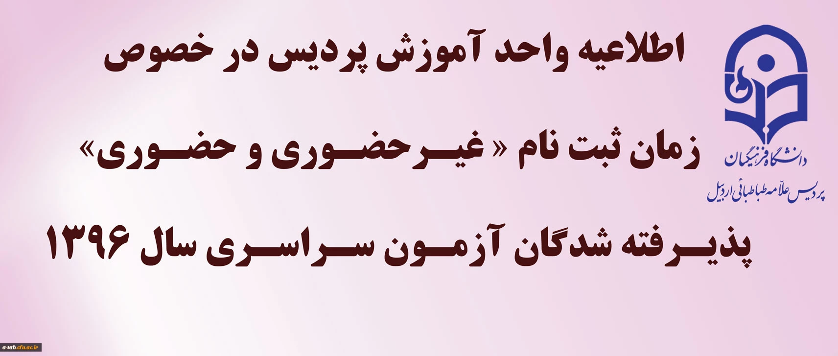 امتیاز دهید : اطلاعیه مهم زمان ثبت نام « غیرحضوری و حضوری» پذیرفته شدگان آزمون سراسری سال 1396 2 یکشنبه 26 شهریور 1396 ساعت 10:42