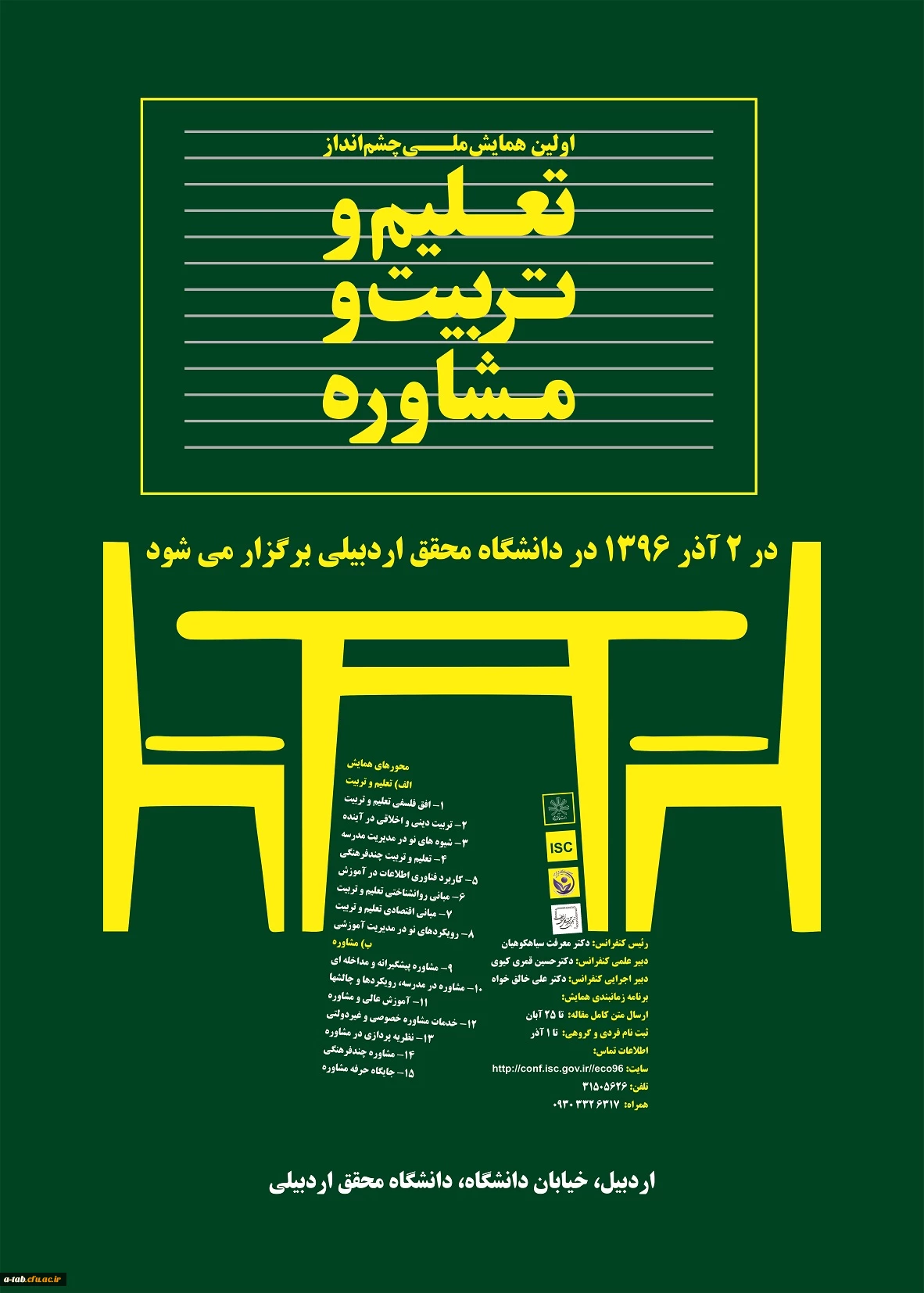 امتیاز دهید : اولین همایش ملی چشم انداز تعلیم و تربیت و مشاوره در دانشگاه محقق 2 پنجشنبه 27 مهر 1396 ساعت 18:03