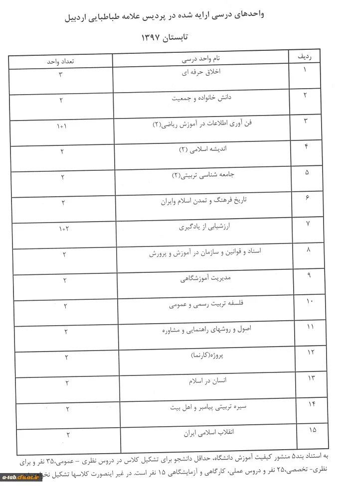 امتیاز دهید : لیست دروس ارایه شده در تابستان 1397 در پردیس علامه طباطبایی اردبیل 2 یکشنبه 17 تیر 1397 ساعت 8:38