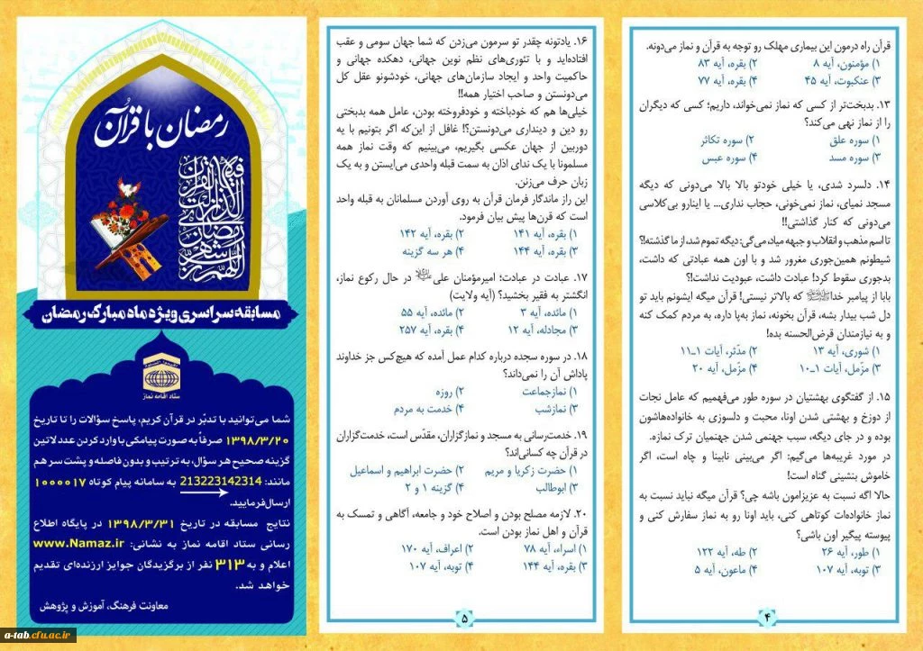 ستاد اقامه نماز کشور برگزار می کند؛ مسابقه بزرگ پیامکی ماه مبارک رمضان با عنوان «رمضان با قرآن» 2