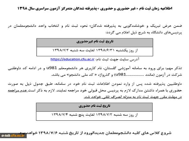 اطلاعیه در خصوص ثبت نام دانشجومعلمان جدیدالورود 2