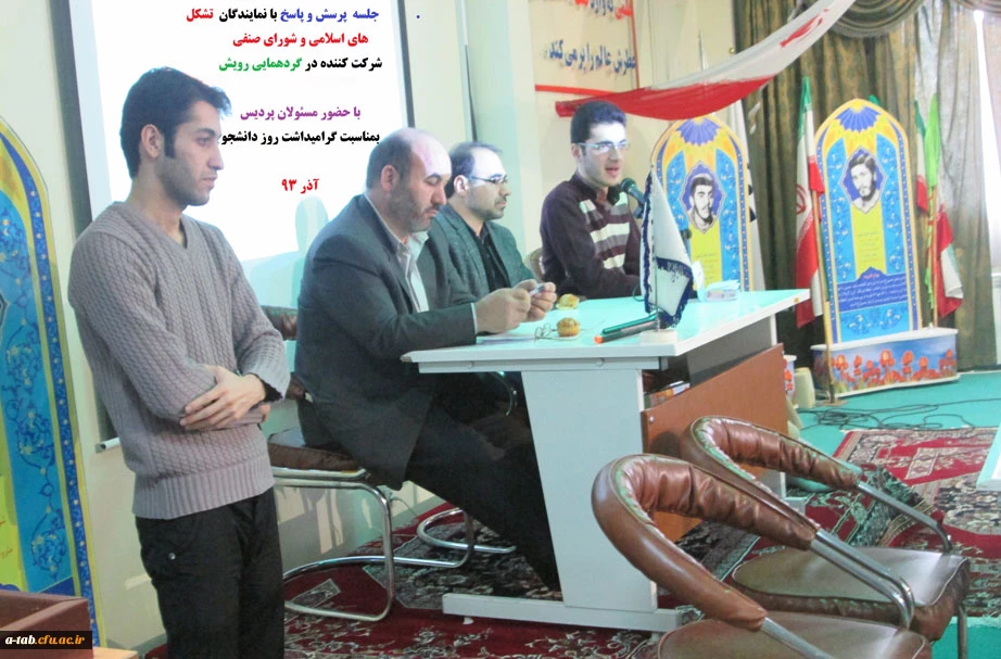 برگزاری کرسی آزاد اندیشی و جلسه ی پرسش و پاسخ به مناسبت گرامی داشت روز دانشجو با نمایندگان تشکّل های اسلامی و شورای صنفی شرکت کننده در همایش رویش با حضور مسئولان دانشگاه فرهنگیان اردبیل 2