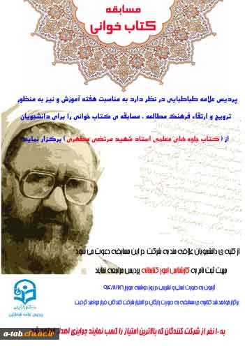 پردیس علامه طباطبایی اردبیل به مناسبت هفته آموزش برگزار می کند: مسابقه کتابخوانی از کتاب جلوه های معلمی استاد شهید مرتضی مطهری 2