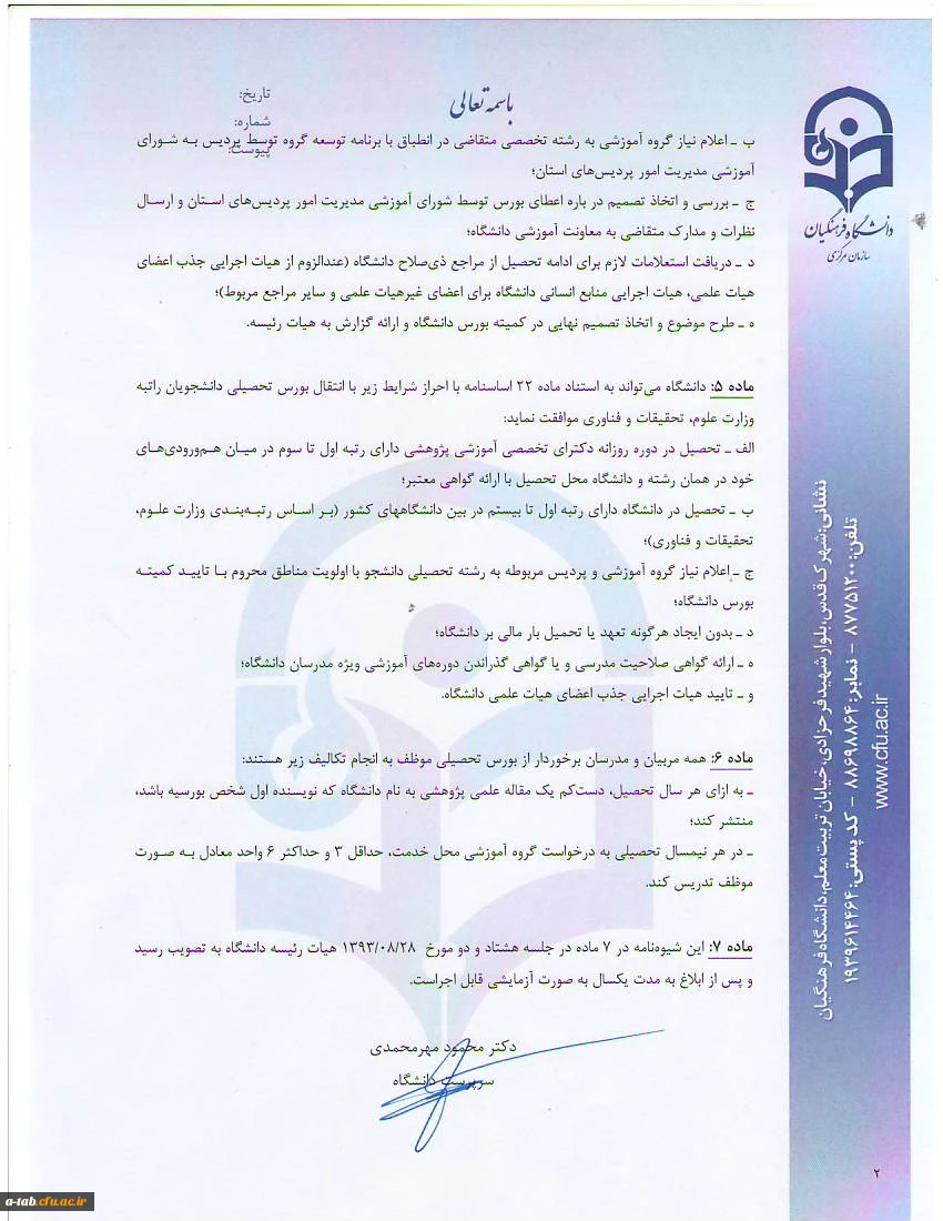 شیوه نامه اعطای بورس تحصیلی به مدرسان و اعضای هیأت علمی