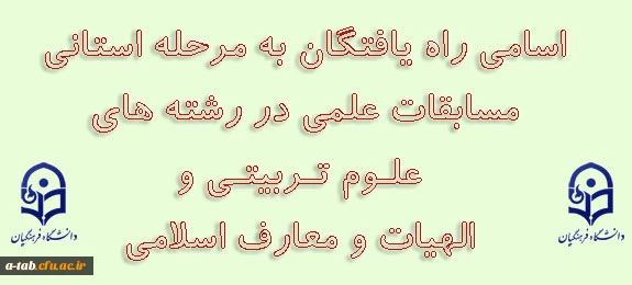 اسامی دانشجویان راه یافته به مرحله استانی مسابقات علمی در رشته های علوم تربیتی و الهیات و معارف اسلامی 2