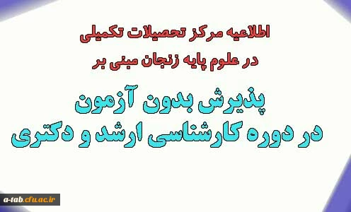 اطلاعیه مرکز تحصیلات تکمیلی در علوم پایه زنجان مبنی بر پذیرش بدون آزمون در دوره کارشناسی ارشد و دکتری برای سال تحصیلی 95-1394 2