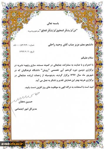 امتیاز دهید : درخشش دانشجویان پردیس علّامه طباطبایی اردبیل در دومین همایش رویش تخصّصی 6 شنبه 7 شهریور 1394 ساعت 10:21